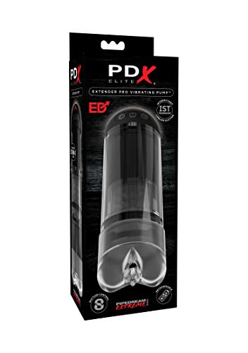 This revolutionary patent design allows you to customize your pleasure with an extendable tube that locks in place at the exact length you desire. The Extender Pro Vibrating Pump has progressive IST technology with incredible realistic intermittent suction to provide lifelike “milking” sensations for the best blow job of your life!For an even more mind-blowing masturbation experience, enjoy fully automated vibration along with the powerful suction. Simply press the buttons on the rechargeable motor for 3 suction modes and 5 patterns of teasing vibrations that travel all the way up your penis. The crystal-clear tube is designed for a firm grip and allows you to view the action. The stretchy TPR pleasure donut helps create a tight seal, while the supple internal pleasure nubs gently stroke your shaft.Features:Progressive IST Technology = Lifelike Intermittent Suction : Enjoy maximum pleasure with realistic intermittent suction that automatically milks your shaft and feels just like a real oral experience. Surround your penis with 3 modes of stimulating vacuum suction that snugly tugs you to ecstasy!The Results are Clear : The clear durable suction tube allows you to view the action.Removable Soft Pleasure Topper : The stretchy pleasure topper features a supple vagina that forms an air-tight seal to create intermittent suction. The topper is removable for easy cleaning and the pump may be used with or without it.Erectile Dysfunction Aid : Regular masturbation strengthens pelvic floor muscles, helping to prevent erectile dysfunction (ED) in men. Edging, the practice of purposely delaying orgasms, can build a sexual stamina and can help with ED by encouraging healthy blood flow to the penis.